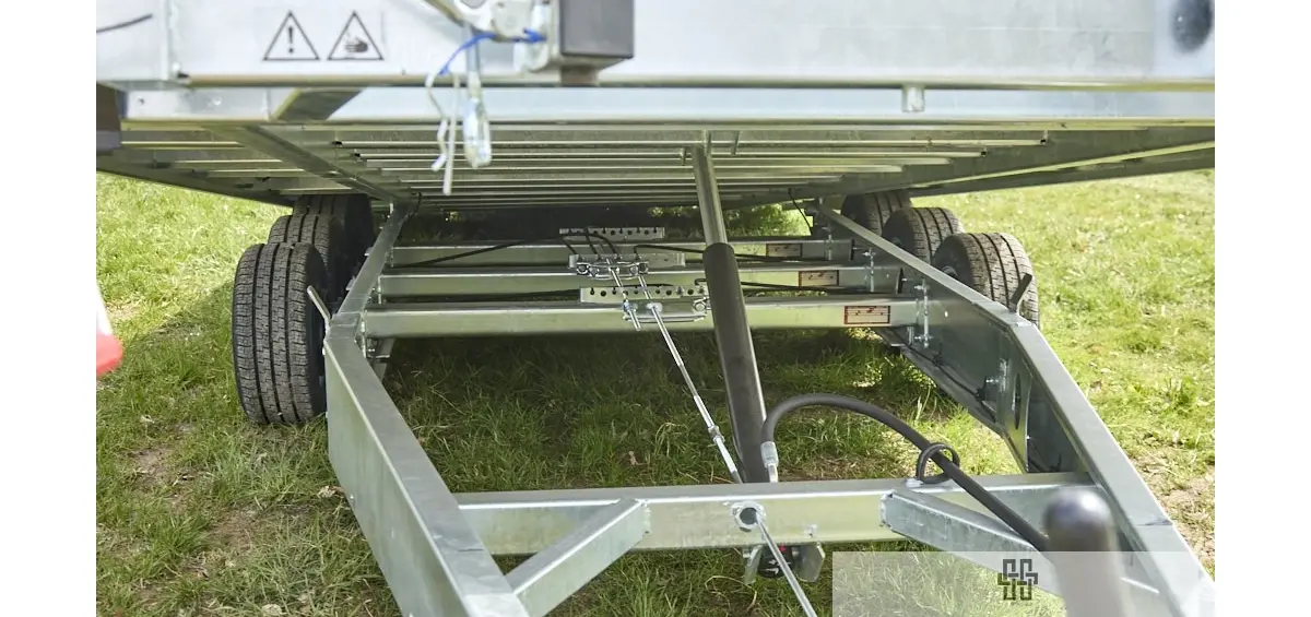 Durch robustes Fahrwerk (Knott) und verstärkte Achsen ist der Martz GT 580/3 Maschinentransporter 580x206 cm 3500 kg Alu Boden ideal für Baustellen und Dauereinsatz.